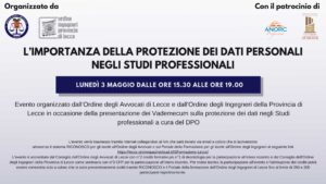 L’Ordine degli Avvocati di Lecce e l’Ordine degli Ingegneri della Provincia di Lecce organizzano un evento dal titolo “L’importanza della protezione dei dati personali negli studi professionali”, per essere compliant rispetto alle norme del GDPR.